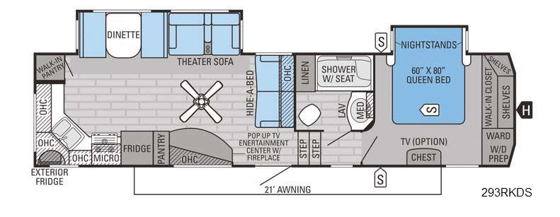 - Built-in “mud room” bench locker/coat storage (a class exclusive, n/a 293RKDS, 317RLTS, 339FLQS, 345BHTS)